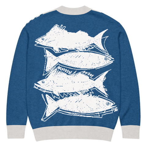 Deja que el océano hable a través de tu atuendo. Este atrevido cárdigan de punto presenta elegantes olas en la parte delantera y una conversación sobre atunes en toda regla en la espalda, ¡porque hasta los pescados en conserva tienen opinión! ...